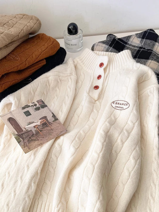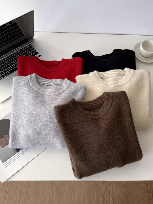 casual soft jacquard round neck long-sleeved knitted sweater S4680