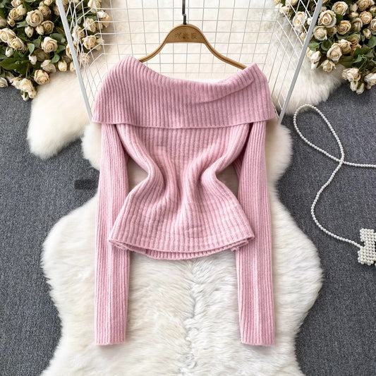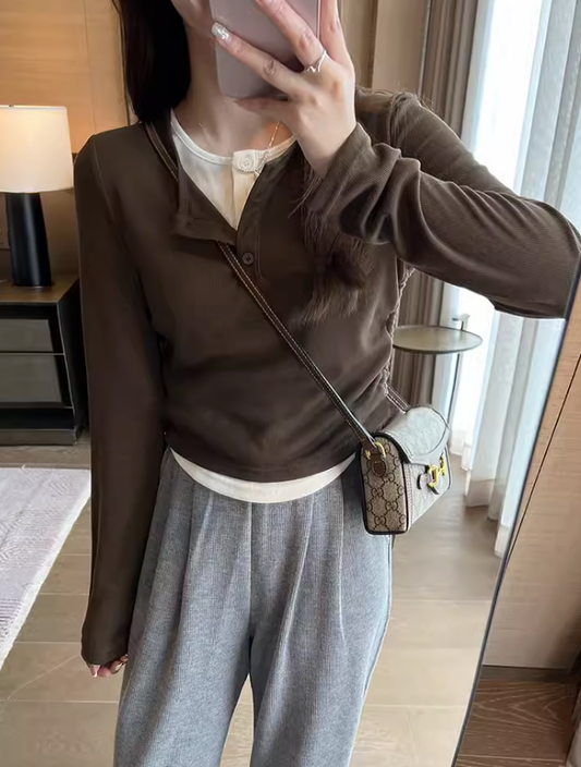 V-neck stretch knitted shirt for women sweater long-sleeved short top S3977