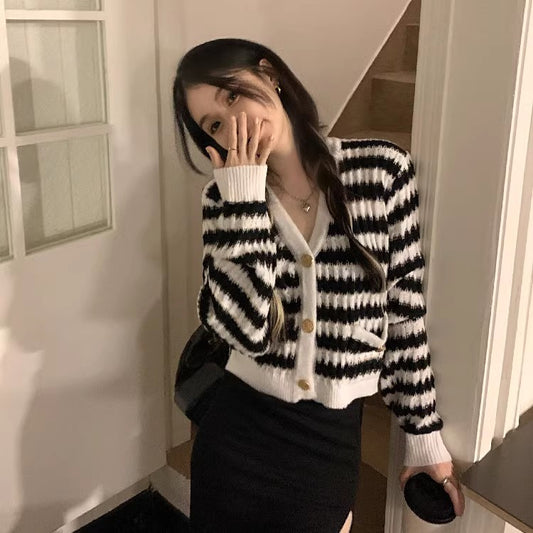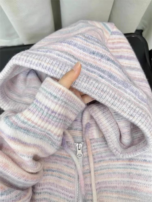 Rainbow striped knitted cardigan jacket women's hot style sweater S3404