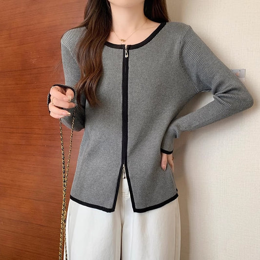 Women's new Korean style sweater women's coat zipper knitted cardigan S3411