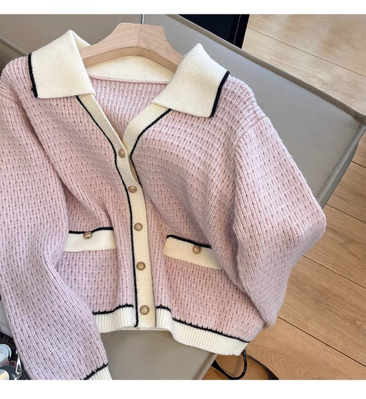 knitted cardigan for women POLO collar sweater jacket S4848