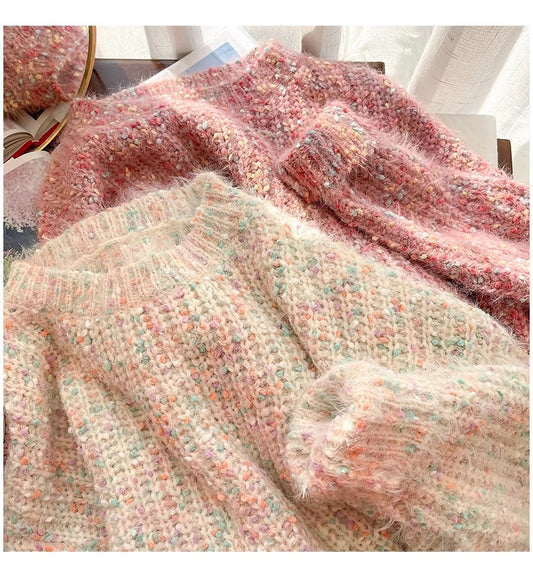 Rainbow polka dot pullover sweater for women S4849
