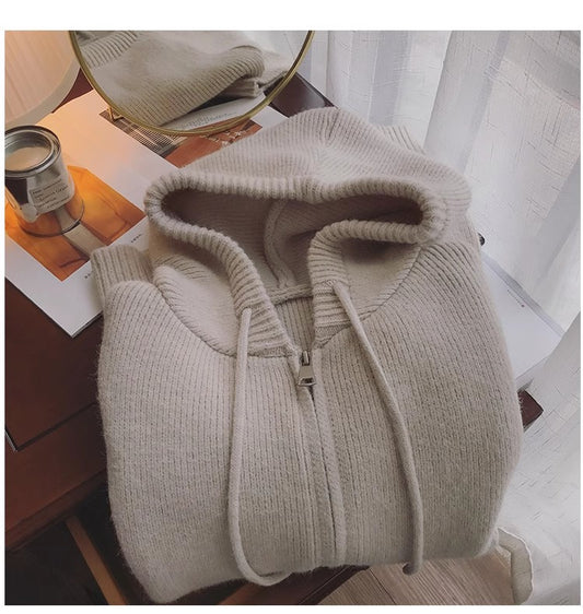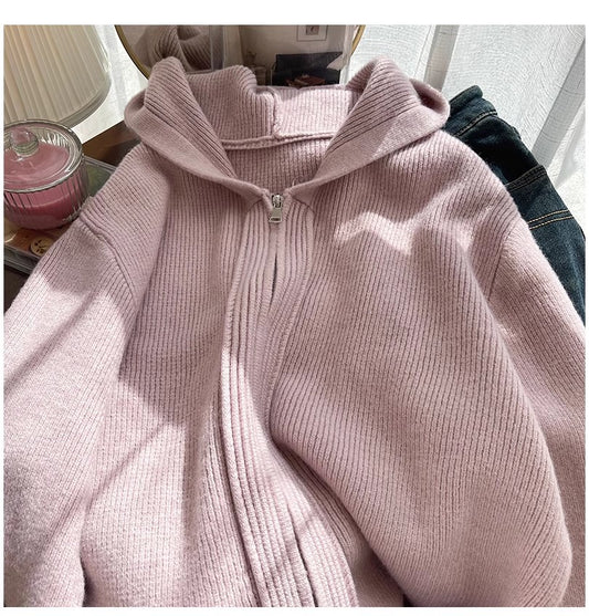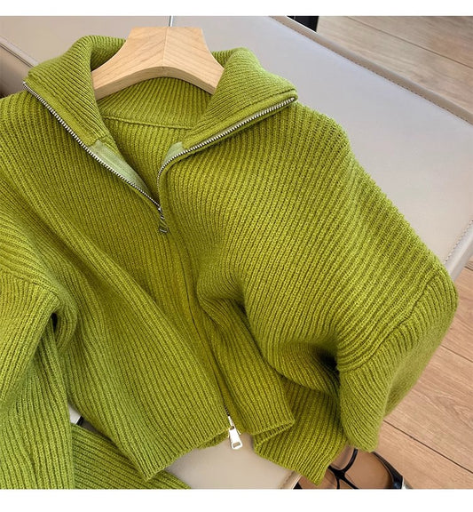 Solid color zipper knitted cardigan for women long-sleeved sweater jacket S4850