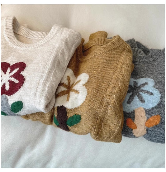 Retro floral sweater for women new soft round neck sweater trend S4855