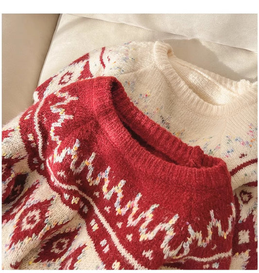 Christmas Jacquard Sweater Women's Round Neck Knitted Top S4847
