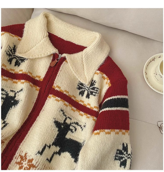 Christmas jacquard long-sleeved sweater jacket for women knitted cardigan S4846
