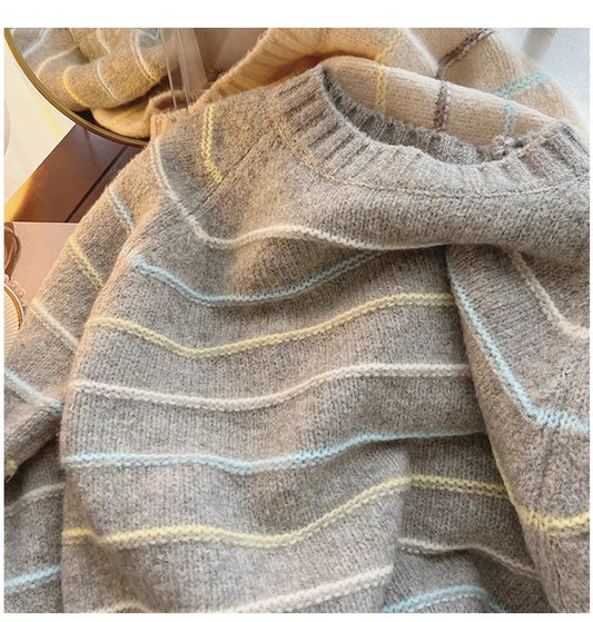 striped round neck sweater for women S4854
