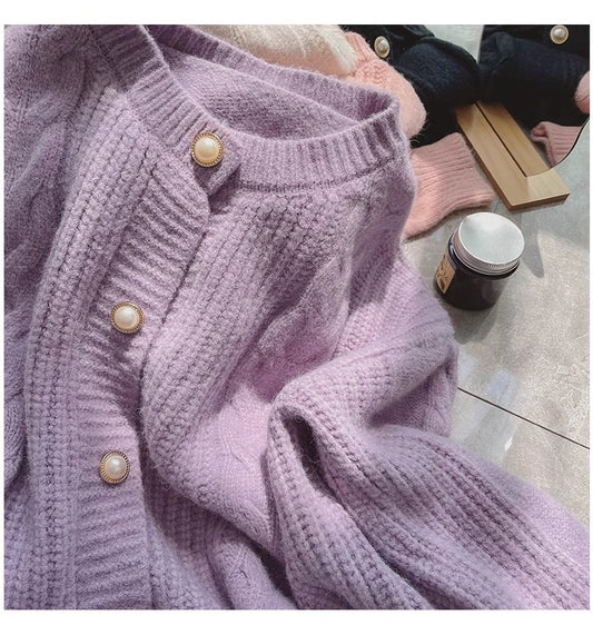 round neck knitted cardigan for women soft comfortable sweater jacket trendy S4852