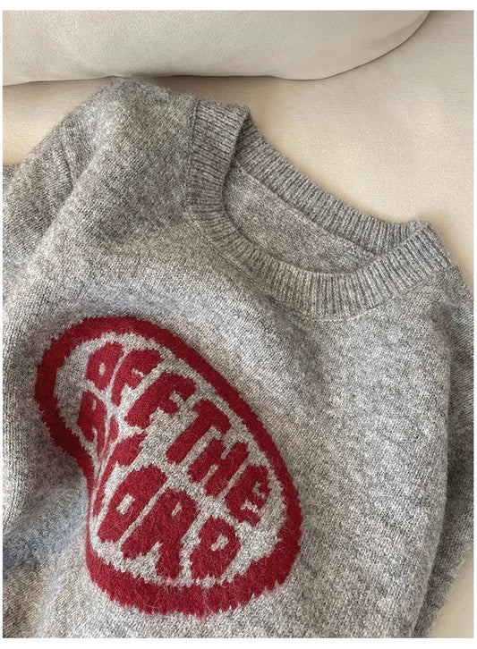 Gray soft round neck sweater for women long-sleeved knitted top S4824