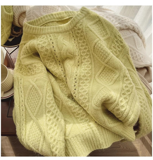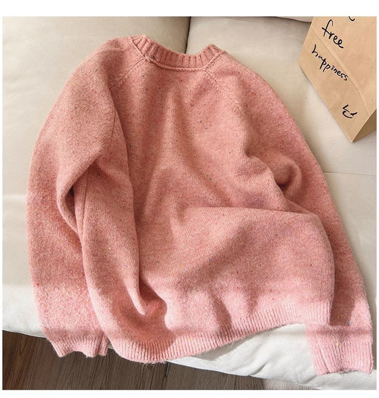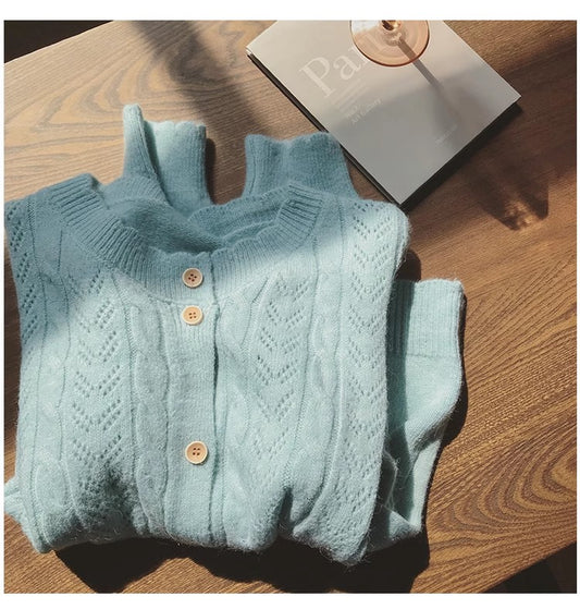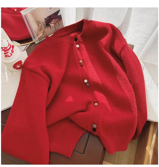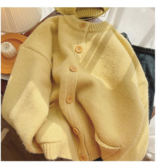 Round neck long-sleeved sweater jacket for women soft knitted cardigan S4834
