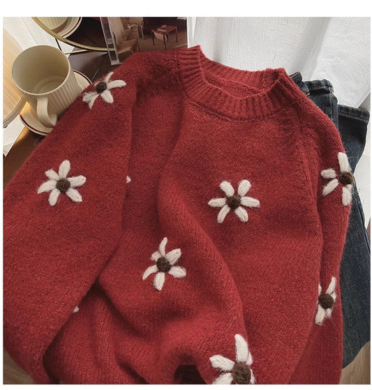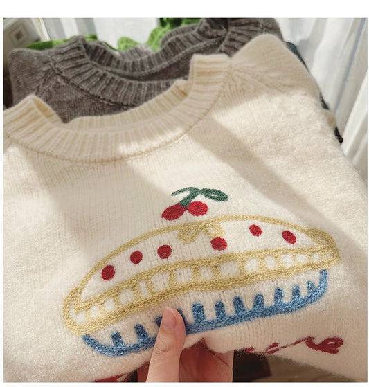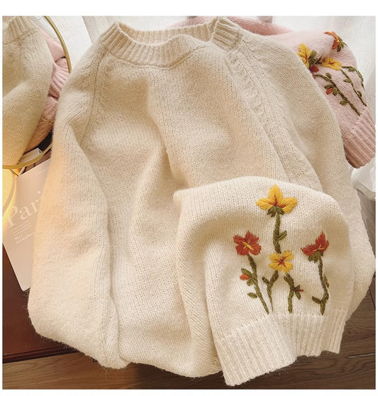 Sweet embroidered round neck sweater for women round neck sweater S4829