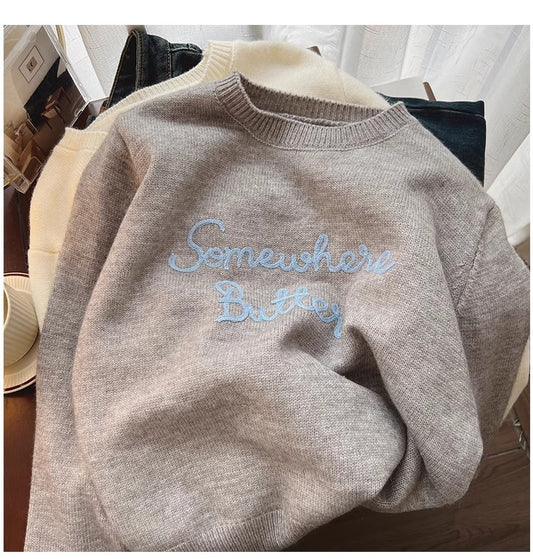 Designed embroidered round neck sweater for women long-sleeved sweater casual top S4831