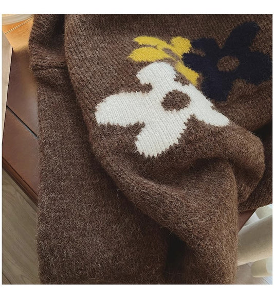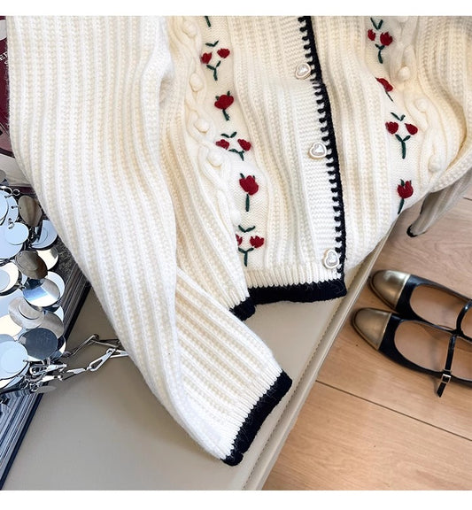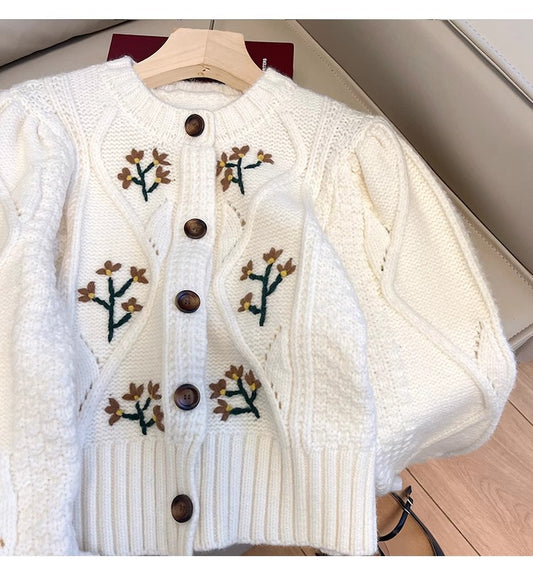 embroidered round neck knitted cardigan for women long-sleeved sweater jacket S4828