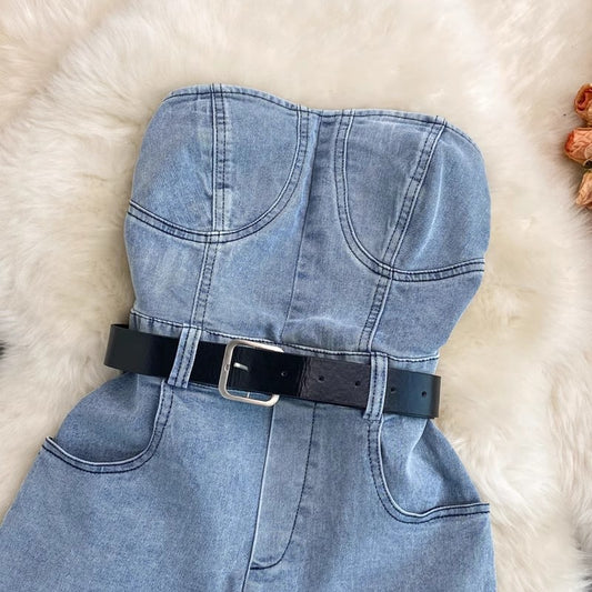 Fashionable tube top denim jumpsuit for women fashion jumpsuit trendy S4190