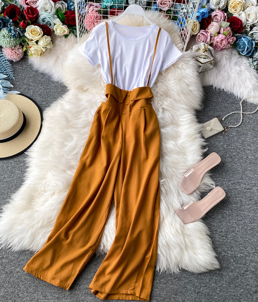 Simple sleeveless jumpsuit wide leg jumpsuit S130