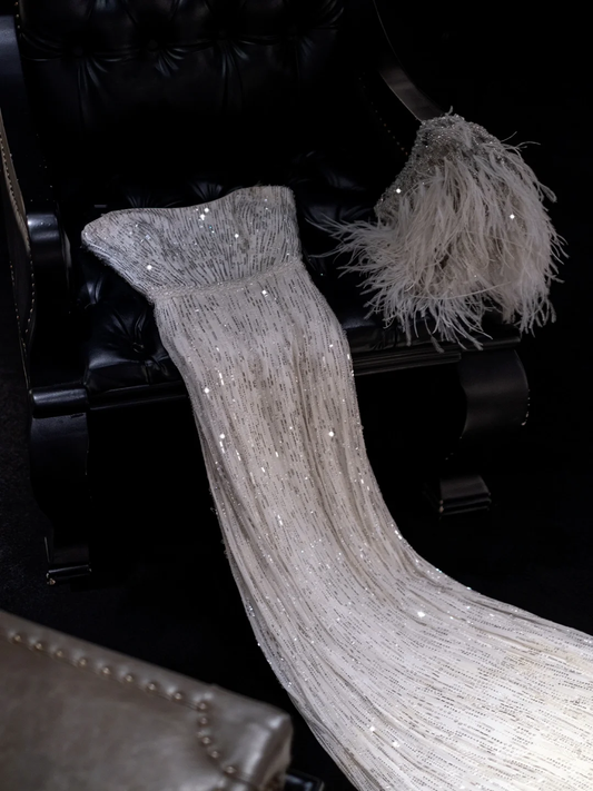 White sequined strapless shawl fitted long ball gown/bridal dress R8823