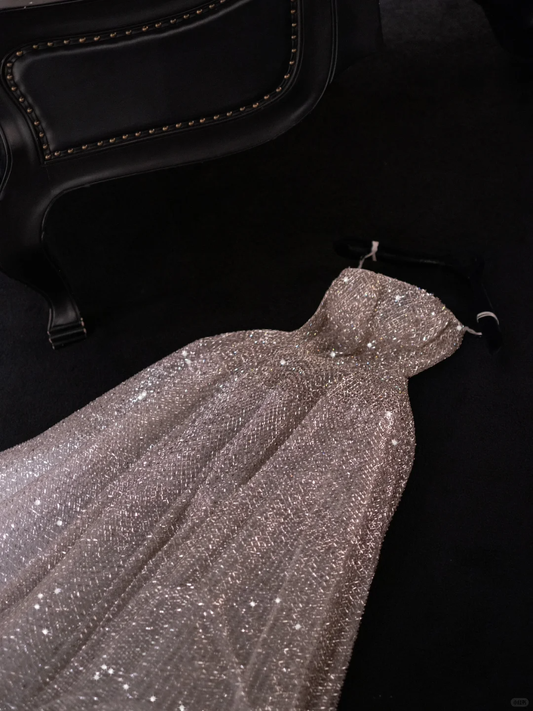 Light pink sequined strapless fitted long ball gown/bridal dress R8814