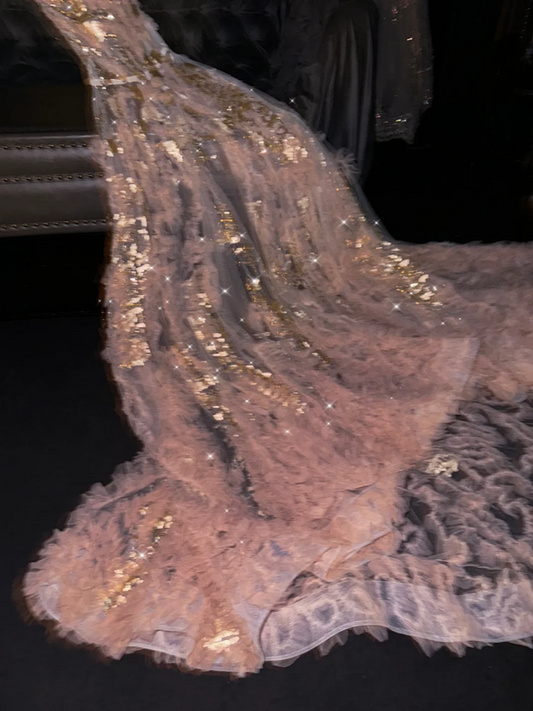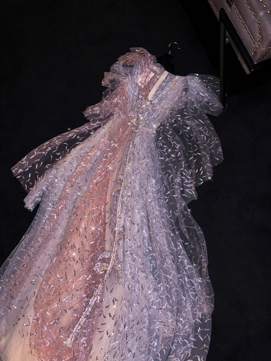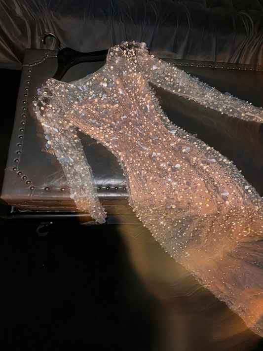 Light pink strapless silver sequined fitted long ball gown, bridal dress R8802