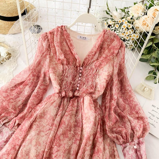 Chiffon Floral Dress,chic Sweet Dress S4436