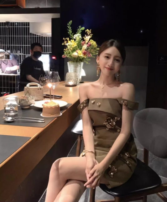 Birthday dress high-end party dress high-end niche one-shoulder suspender dress R1804