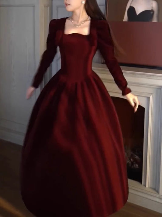 Birthday dress high-end Hepburn style dress high-end niche toast dress square collar dress R1798