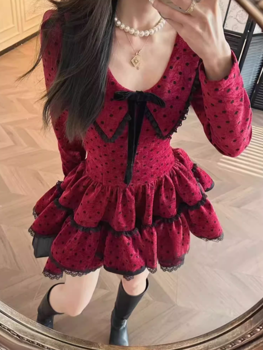 Fairy red off-shoulder dress with slim waist and long swing chiffon dress for holiday R1743