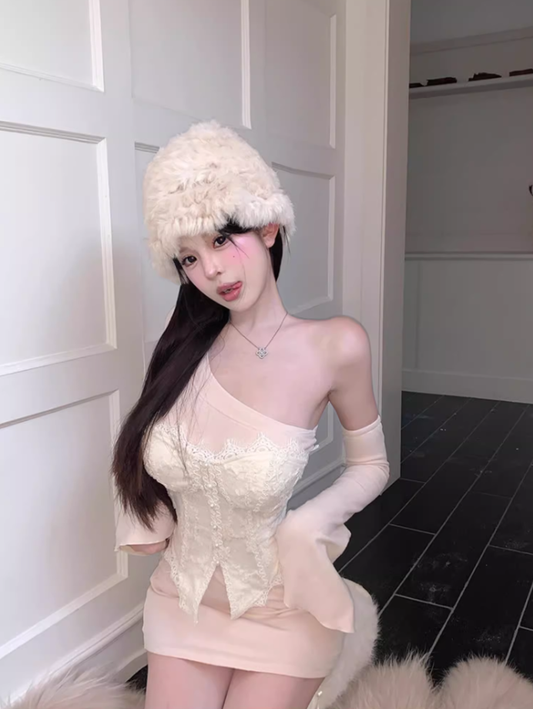 Fairy temperament wear a complete set of lace suspenders knitted vest skirt layered wear R1734