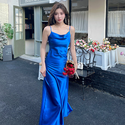 Dress blue wedding banquet high-end banquet temperament slim tube top dress R1624