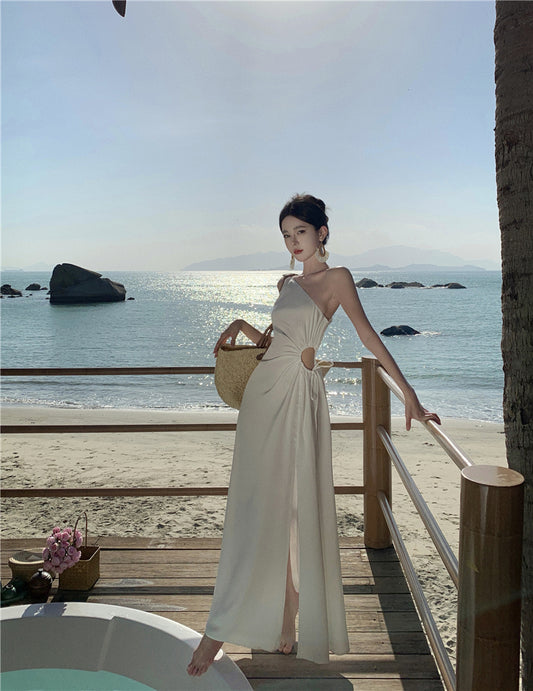Photo skirt waist-baring one-shoulder dress design seaside atmosphere holiday beach skirt R1592