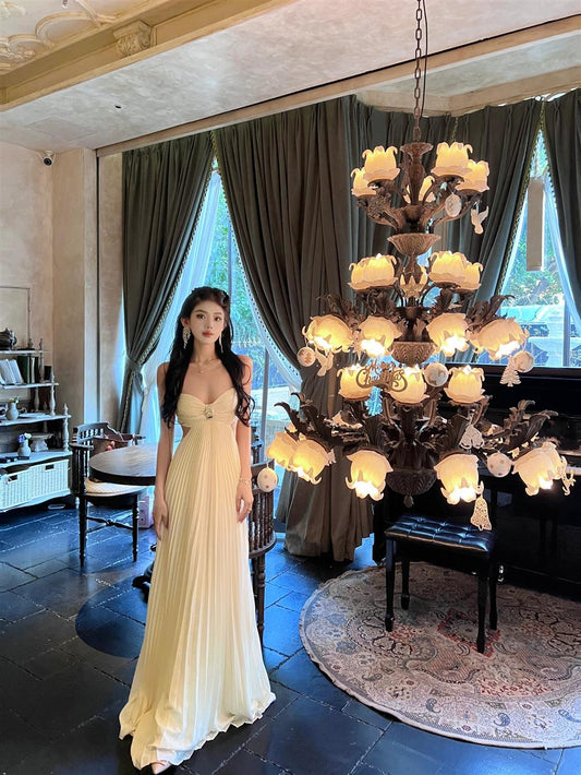 French style beautiful yellow temperament sling dress loose lazy holiday beach dress R1588