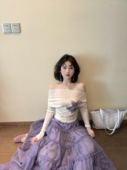 French style gentle temperament beautiful purple vest a-line skirt two-piece suit R0880