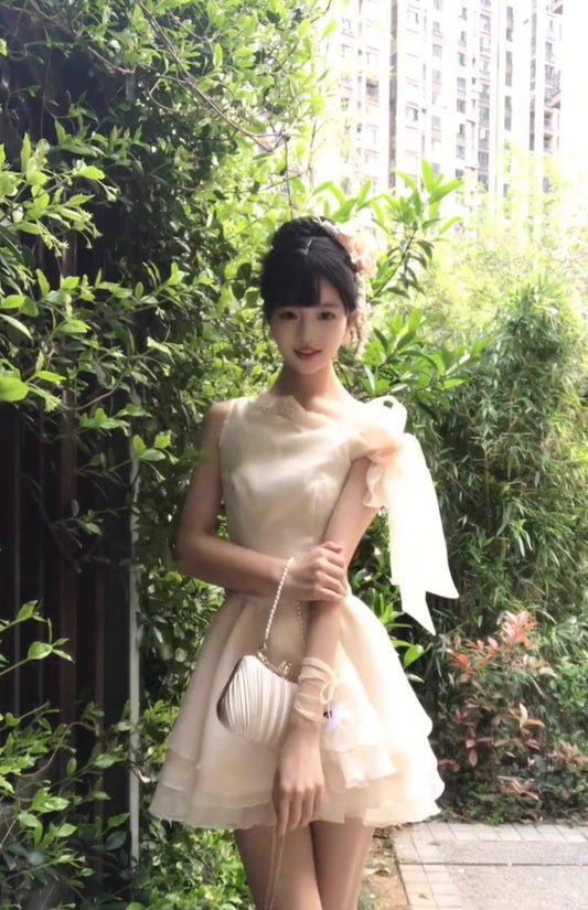 Temperament flower one-shoulder dress niche design banquet small dress R0797