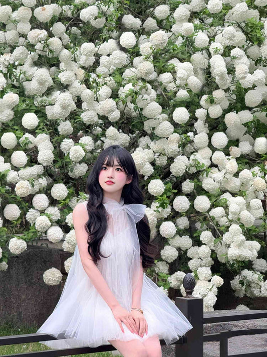 Gentle and sweet style white mesh sleeveless dress beautiful loose A-line short skirt R0801