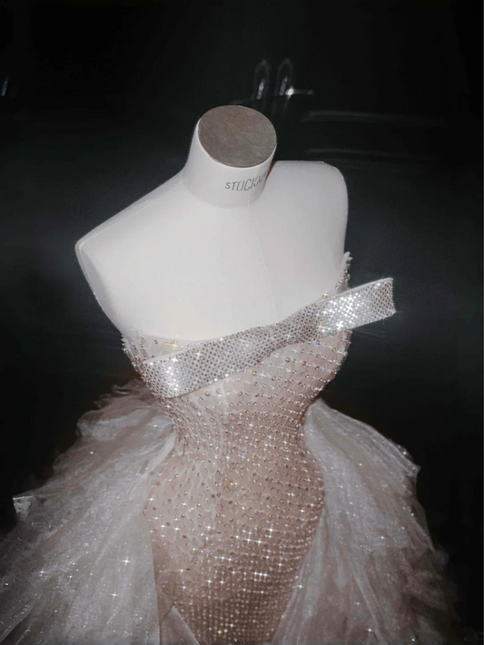 White tube top sequined waist slim sexy long skirt, prom dress R5665