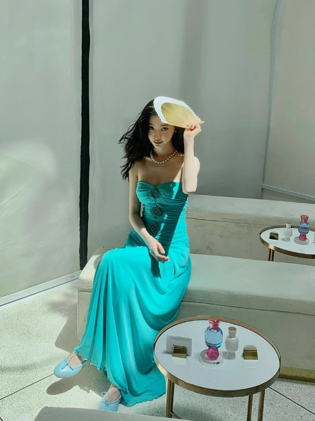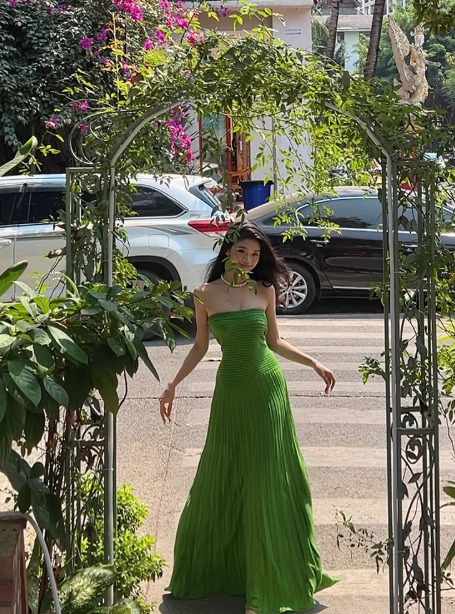 Mint Mambo Green Tube Top Suspender Dress 2025 New Holiday Style Irregular Temperament Long Dress R0243