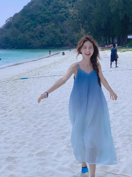 Atmosphere seaside holiday style French gradient suspender dress loose slim beach dress R0229