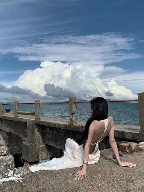 Sexy backless French style pure desire halter neck suspender dress white skirt at the seaside R0236
