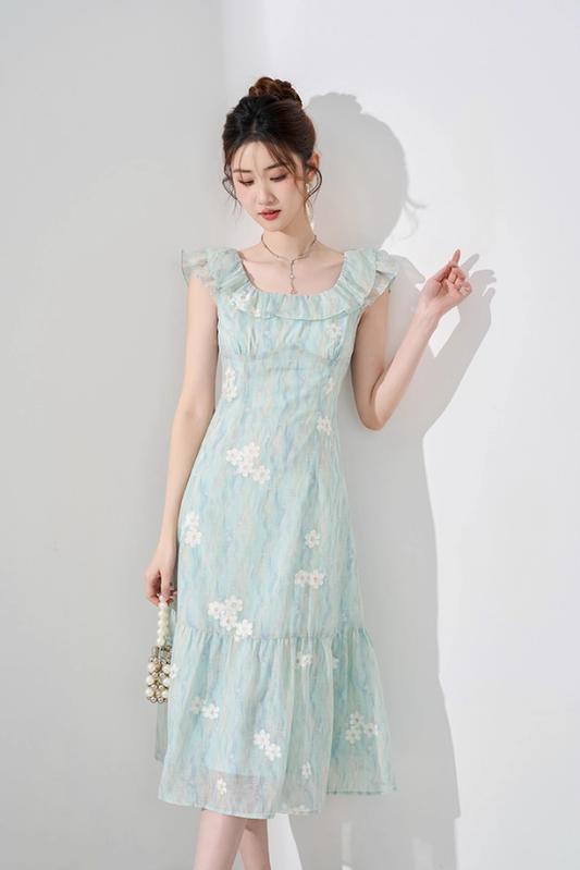 Niche design dress new summer high-end French temperament slimming Chinese style skirt R4299