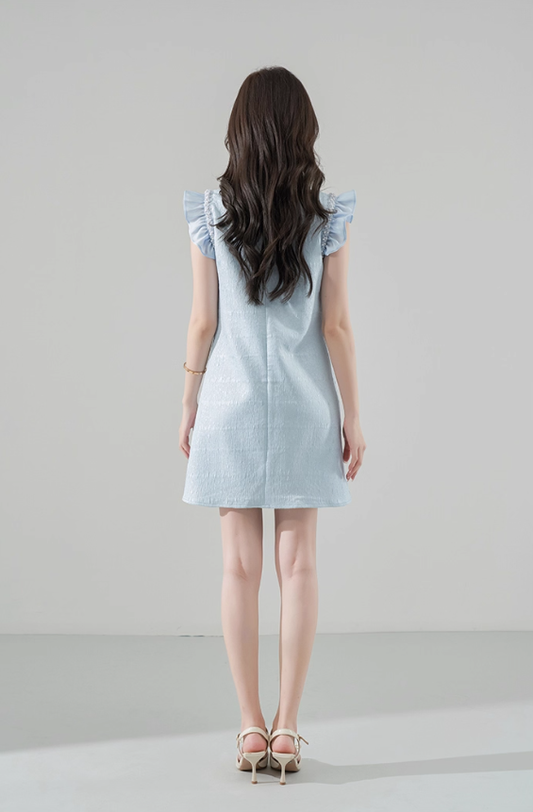 French V-neck blue floral dress women's summer retro sleeveless short skirt R4303