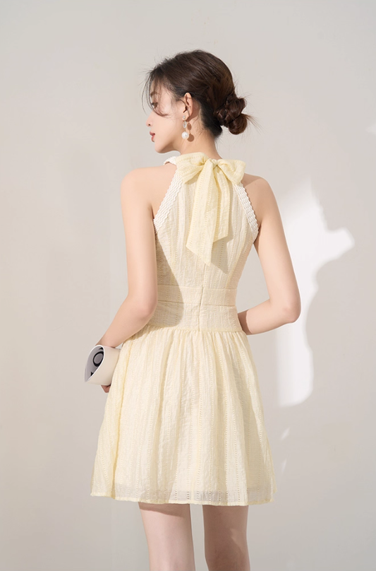 French yellow dress for women in summer pure desire style temperament waist slimming princess short skirt R4300