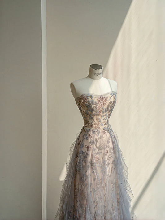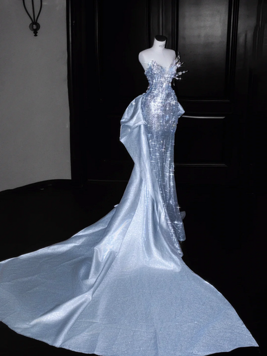 Light blue tube-top sequined diamond-studded waist slim-fitting hip-hugging maxi skirt, prom dress R5631