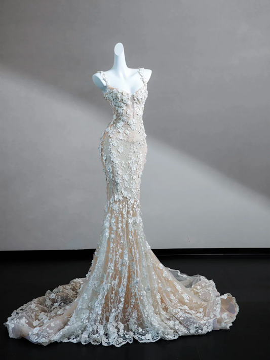 White sequined tube top pattern waist slim hip long skirt, prom dress R5629