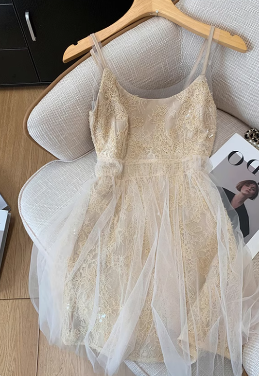 Sweet and spicy suspender dress for women new style waist slim mesh lace waist short skirt R3988