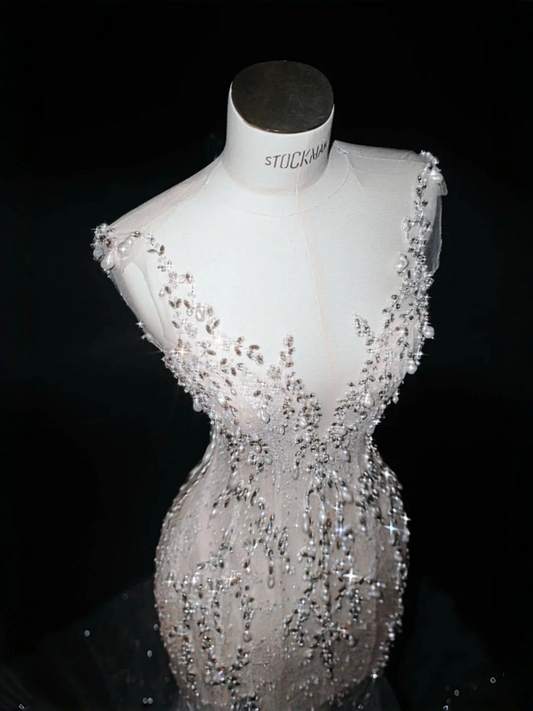 White satin tube top waist hip skirt, prom dress R5626