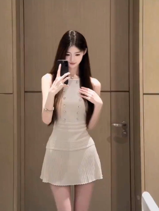 Suit outfit gentle temperament white vest pleated skirt two-piece suit R0662