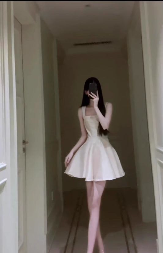 Suspender dress French style high-end waist a-line birthday puffy short skirt R0609
