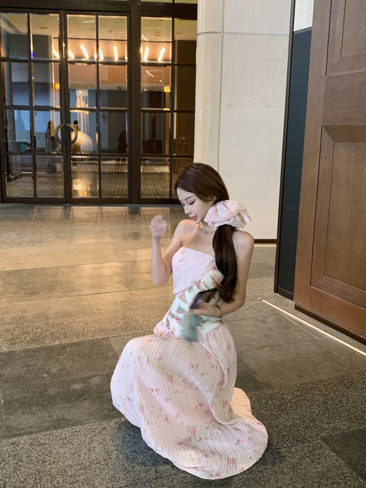 Floral suspender dress Slim fit temperament waist hip long skirt R0607