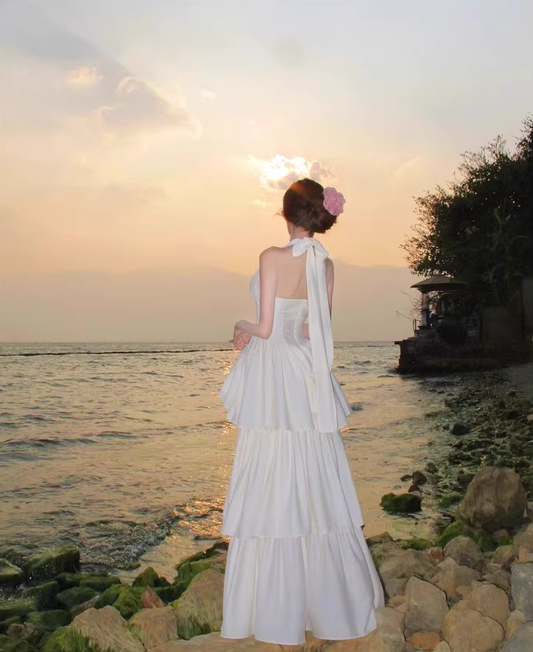 V-neck halter dress with beautiful waist and atmosphere R0600