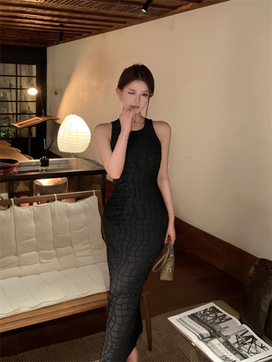 Temperament sleeveless vest dress slim fit hip dress R0559