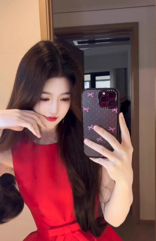 Temperament little black dress bow vest dress waist A-line small dress R0536